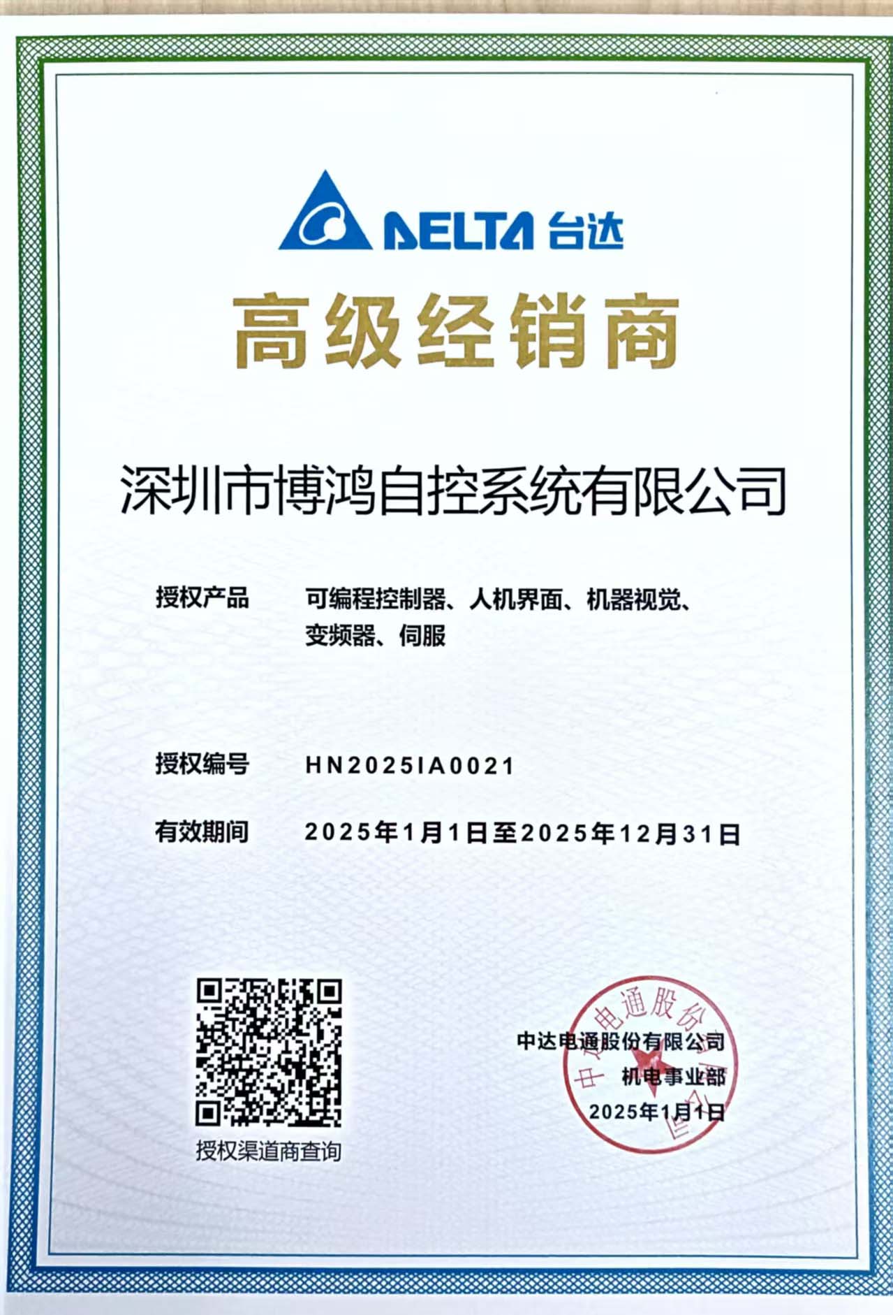 深圳市博鴻自控是臺(tái)達(dá)電子官方授權(quán)的一級(jí)代理,證書可在臺(tái)達(dá)官網(wǎng)查詢,從我司銷售的產(chǎn)品可確保全新原裝正品,一年質(zhì)保,全球聯(lián)保。并享有售后全程技術(shù)支持。
