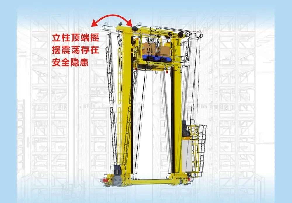 當倉儲貨架層數(shù)較多時,堆垛機的高度也相應增高,堆垛機立柱的擺動也越明顯。尤其是當大負荷快速運行時,立柱的搖擺振蕩甚至會危及系統(tǒng)安全。